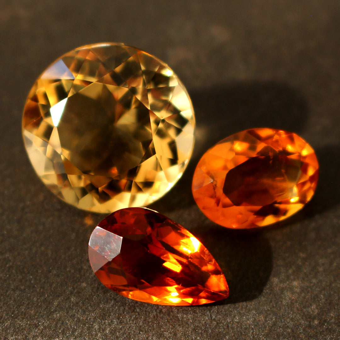 Neben den hier gezeigten Stücken stehen zahlreiche Citrine in